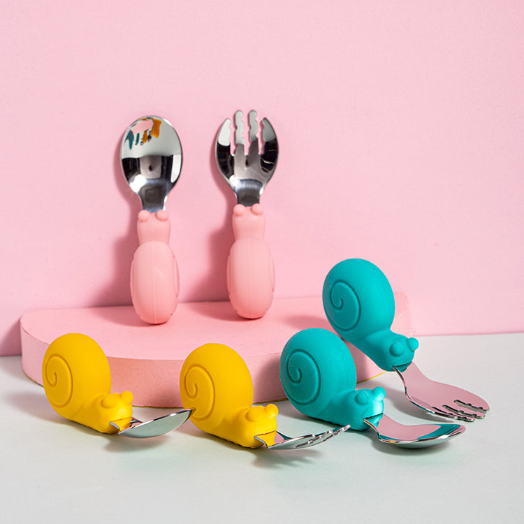 握りやすい形状で、自然と鉛筆持ちが身に付く、初めてのスプーンフォークセット。今ならその他商品と同時購入で『はじめてのスプーン・フォークセット』が170円 OFFで1200円に!
