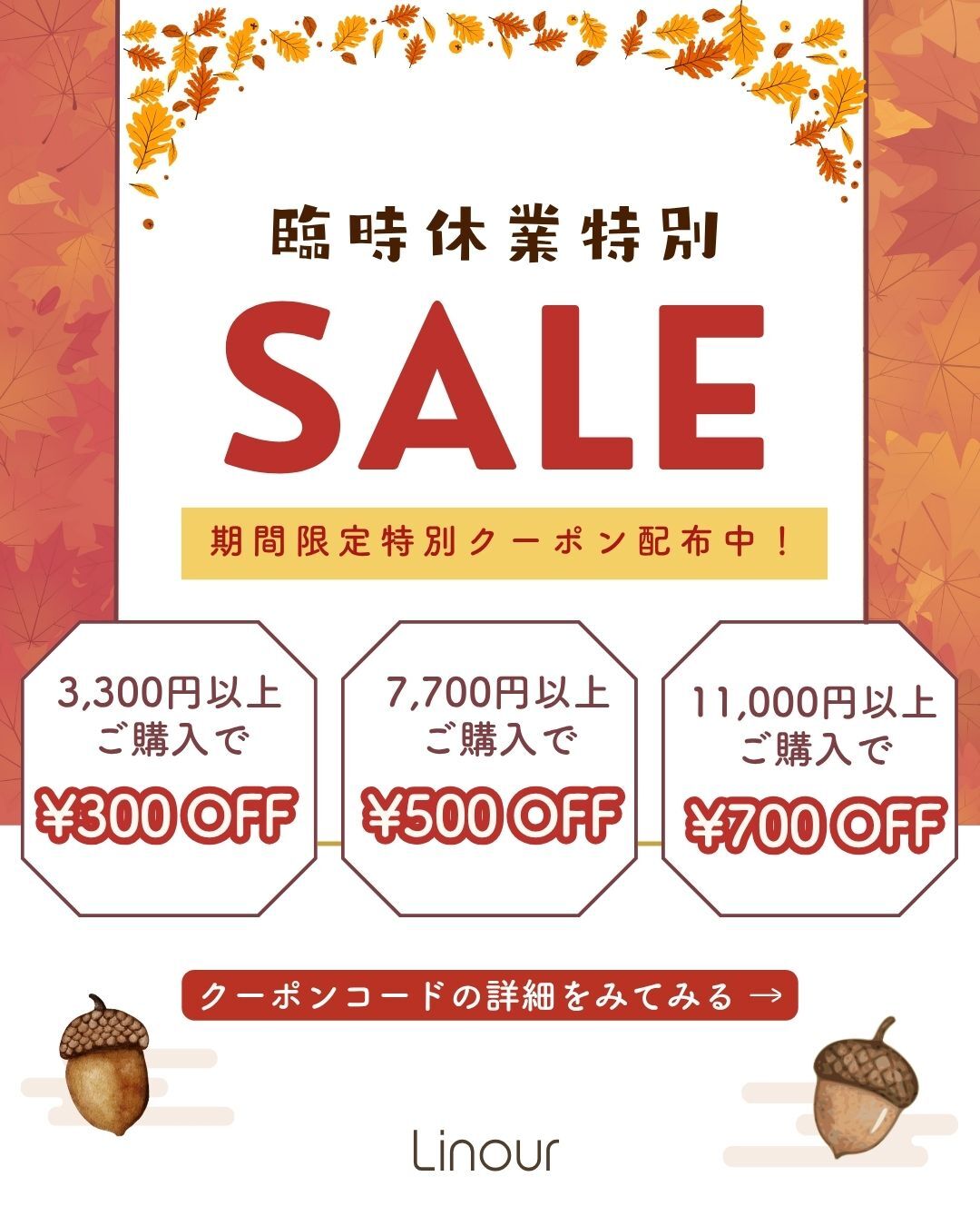 ぜひ、このお得な機会にLinour(リノワ)の製品をお買い求め下さい♪